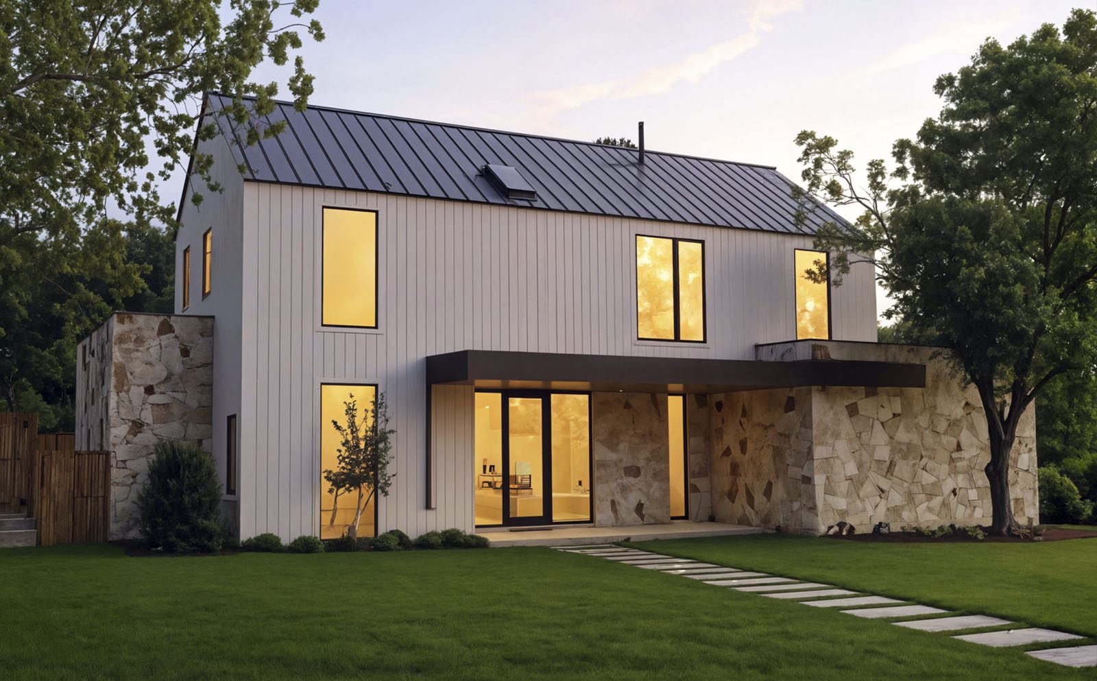 Intended for family getaways on the water, this cabin needed to accommodate connected spaces for family gatherings and multiple bedrooms, oriented to views of the Hill Country landscape. Large roof overhangs and covered porches provide shade and additional areas to gather.
